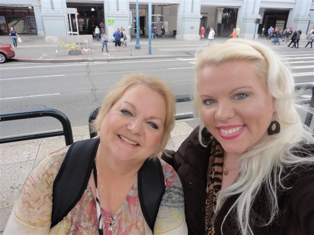 We woke up and headed to downtown San Francisco. We got an awesome parking space and headed straight to the street car. We thought we knew where we were going but we didn’t hear our stop so we rode the street car all the way to the end and had to walk back a few blocks and catch another one. We got off at the right stop and passed a lot of high dollar shopping spots and arrived in China Town. We went to the Far East CafĂ© for Dim Sum (we got Shrimp dumplings, egg rolls and hot green tea – now I am not a tea drinker and I drank 2 cups of it one without sugar and one with and I have to say I think it tasted what I would imagine laundry water to taste like so I would say green tea is not for me. We went in a bead store and the lady asked if we were from England..with our southern belle accents..I can see why it sounds similar (I always wanted to sound like Harry Potter)..I spent too much in this store but how often am in China Town in SF…we went to a couple of more shops..momma bought a Mahjong set.